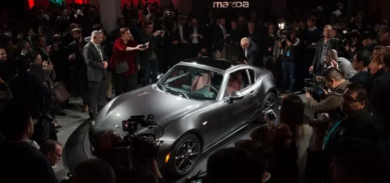 Podczas salonu samochodowego w Nowym Jorku zaprezentowana została po raz pierwszy Mazda MX-5 RF ("retractable fastback") - wersja ze składanym, sztywnym dachem. Nowa odsłona kultowego roadstera Mazdy - w nowym kolorze - Machine Grey, który zaprojektowano dla modeli w stylu KODO.
