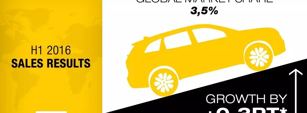 Grupa Renault sprzedała 1,57 miliona pojazdów, co stanowi wzrost o 13,4% w stosunku do pierwszej połowy 2015 r. Grupa ustanowiła tym samym dla marek Renault i Dacia nowy globalny rekord, jeśli chodzi o wyniki sprzedaży w pierwszej połowie roku.