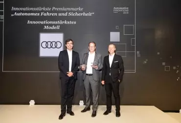 Prestiżowe wygrane: A8 jest najbardziej innowacyjnym samochodem roku 2018, a Audi najbardziej innowacyjną spośród marek segmentu premium w kategorii „Jazda autonomiczna i bezpieczeństwo”.